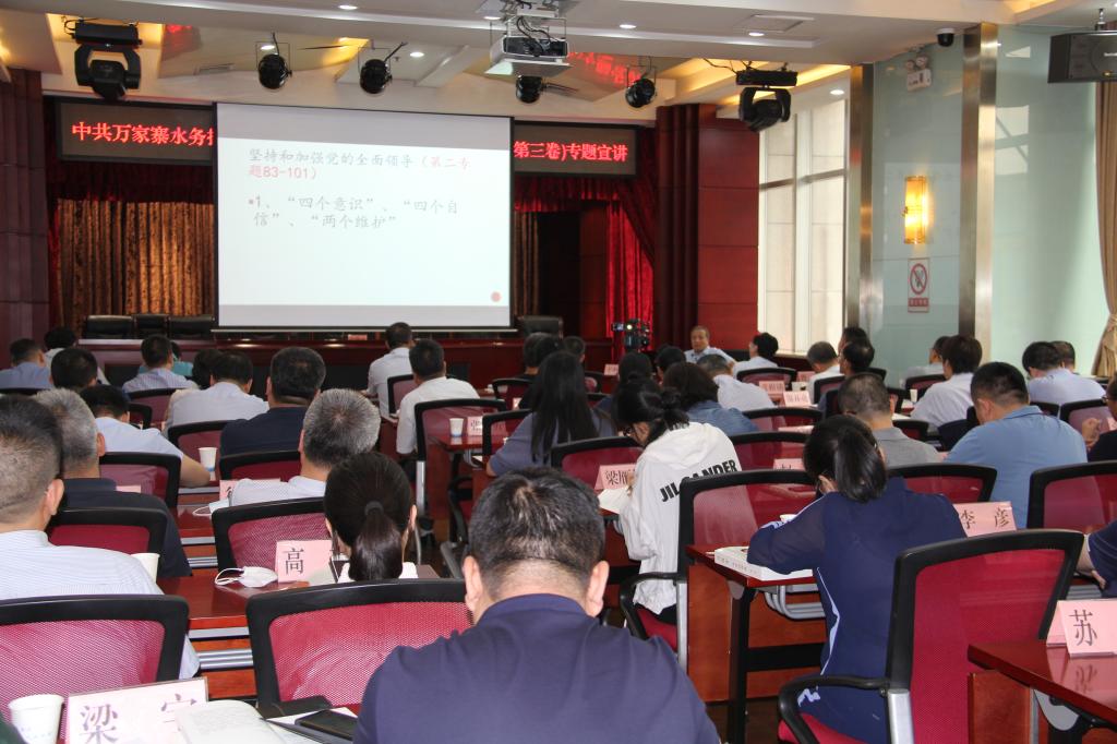 8月21日,水控集團黨委再次召開中心組(擴大)學習會議,邀請山西省委黨校王小軍副教授作《習近平談治國理政》第三卷專題講座。水控集團領導范世平、王晉斌、李俊剛、蘭康杰、曹池、呼運平,水控集團總部全體黨員干部、水資源公司中層以上黨員干部參加。