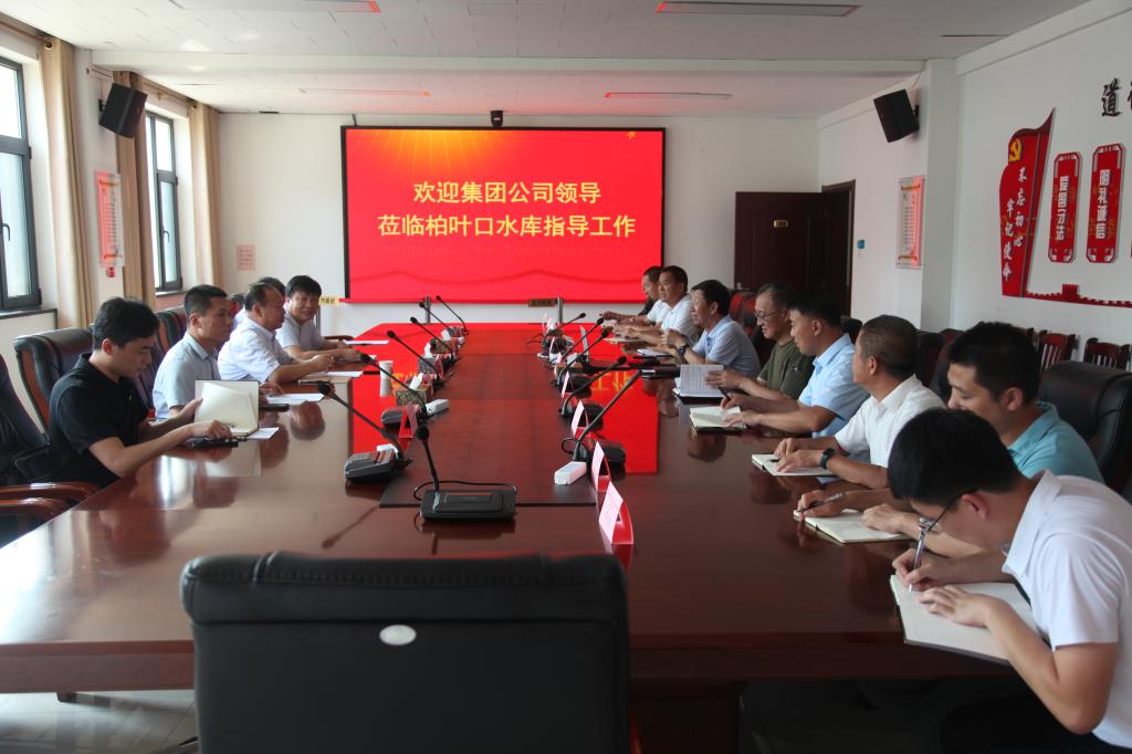 在柏葉口水庫(kù) 8月11日,馮志君一行深入水庫(kù)大壩、溢洪道、泄洪發(fā)電洞等地實(shí)地查看,聽(tīng)取公司工作匯報(bào)以及柏葉口水庫(kù)龍門(mén)水源直供工程方案簡(jiǎn)介情況。