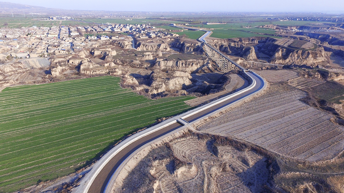 ▲圖為禹門口二級干渠。本項目部分建設(shè)內(nèi)容為在二級干渠沿線建設(shè)再揚(yáng)泵站和支管等工程設(shè)施,恢復(fù)灌溉面積。