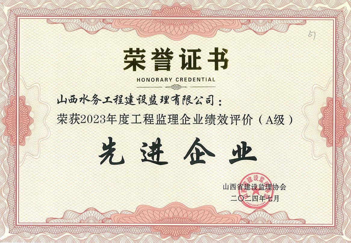 近日,山西水務(wù)工程建設(shè)監(jiān)理有限公司榮獲山西省建設(shè)監(jiān)理協(xié)會“2023年度工程監(jiān)理企業(yè)績效評價(jià)(A級)先進(jìn)企業(yè)”稱號,同時(shí),公司兩名同志被評為“2023年度績效評價(jià)優(yōu)秀總監(jiān)理工程師”。