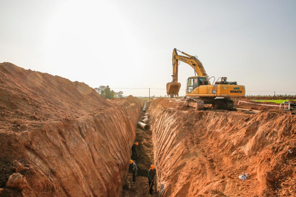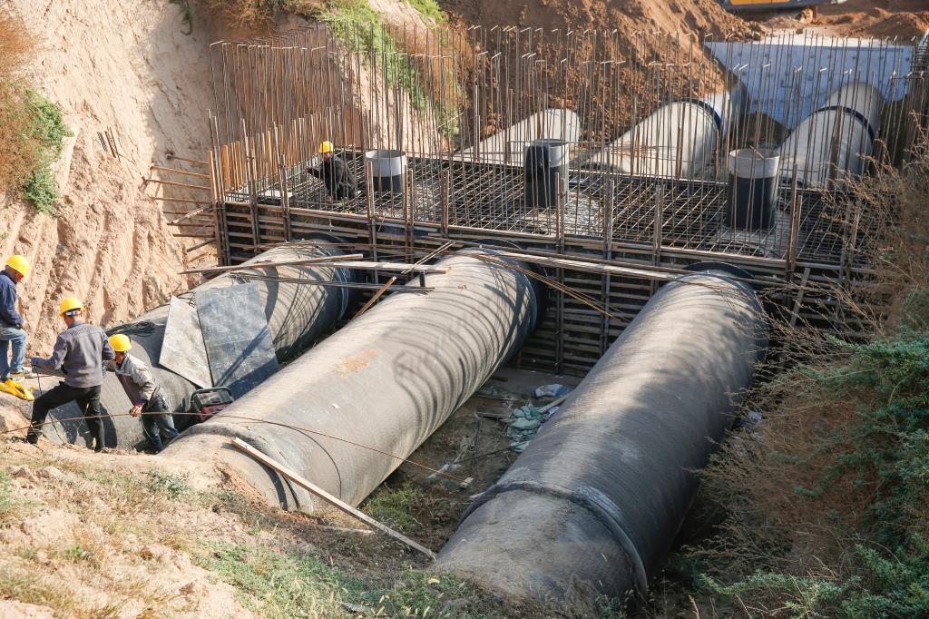 ▲施工13標(biāo)全程34.8公里,目前已完成24.7公里。圖為涑水壓力泵站二號壓力管線排氣閥井施工