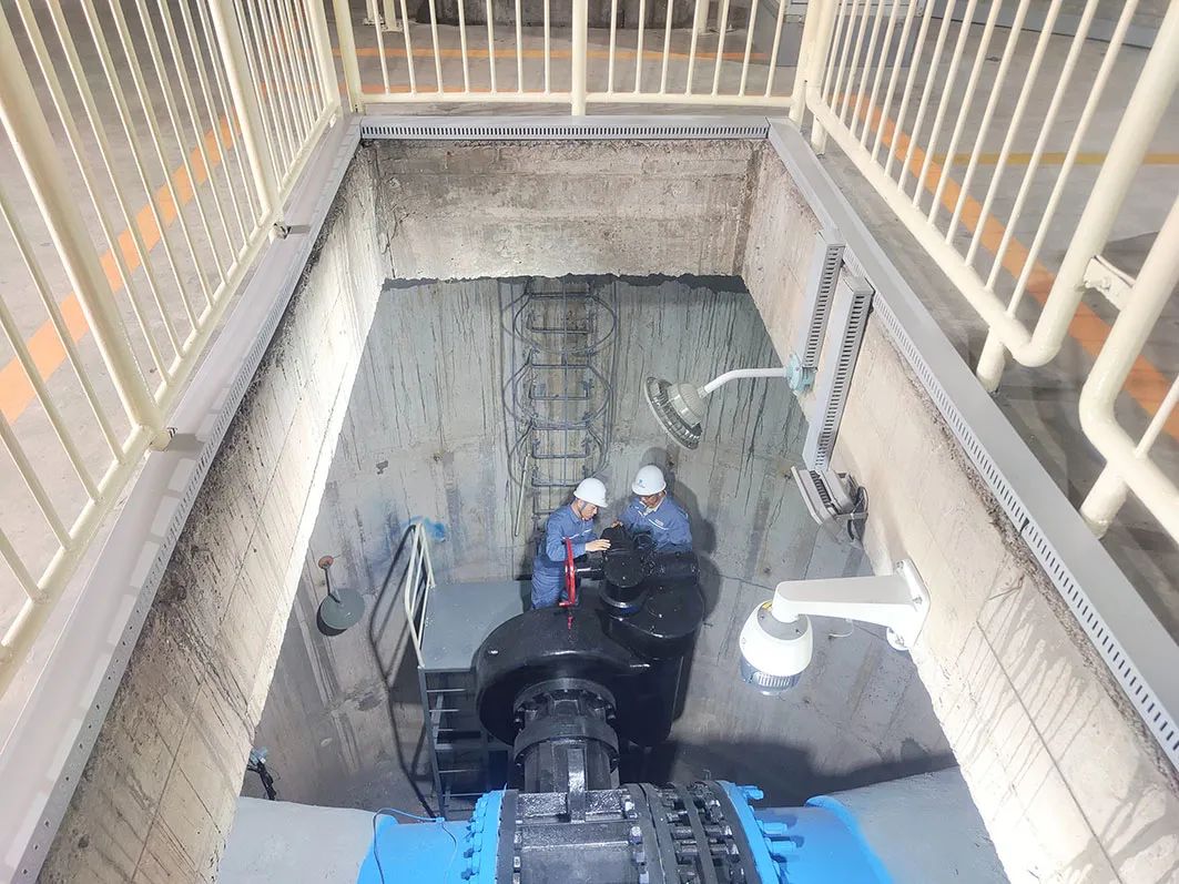 為配合爐峪口水廠供水,萬(wàn)家寨引黃水務(wù)集團(tuán)太原分公司在確保聯(lián)接段PCCP輸水管線安全穩(wěn)定供水的前提下,組織運(yùn)維人員對(duì)爐峪口水廠與聯(lián)接段11號(hào)檢查井銜接管線以及包括檢修閥、調(diào)流閥、流量計(jì)等相關(guān)設(shè)備進(jìn)行全面檢查。在技術(shù)實(shí)施方面,創(chuàng)新采用非等流量供水方案,在確認(rèn)安全后,按照調(diào)度指令首次對(duì)爐峪口水廠連接管線進(jìn)行試送水。在多方協(xié)作下,萬(wàn)家寨引黃工程原水于當(dāng)日12時(shí)成功輸送至爐峪口水廠。