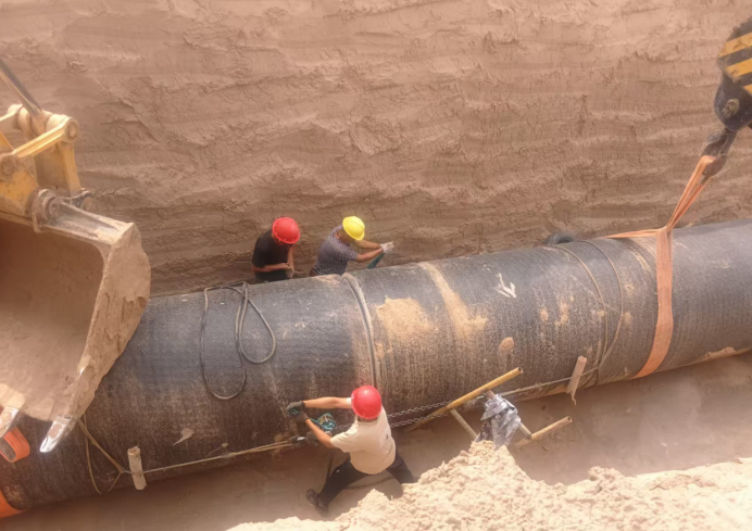 現(xiàn)場(chǎng)工人采用拉導(dǎo)鏈方式進(jìn)行pccp安裝,提高pccp安裝一次合格率