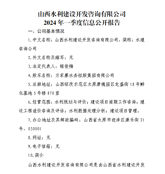 山西黃河水利工程咨詢有限公司2024年第一季度信息...
