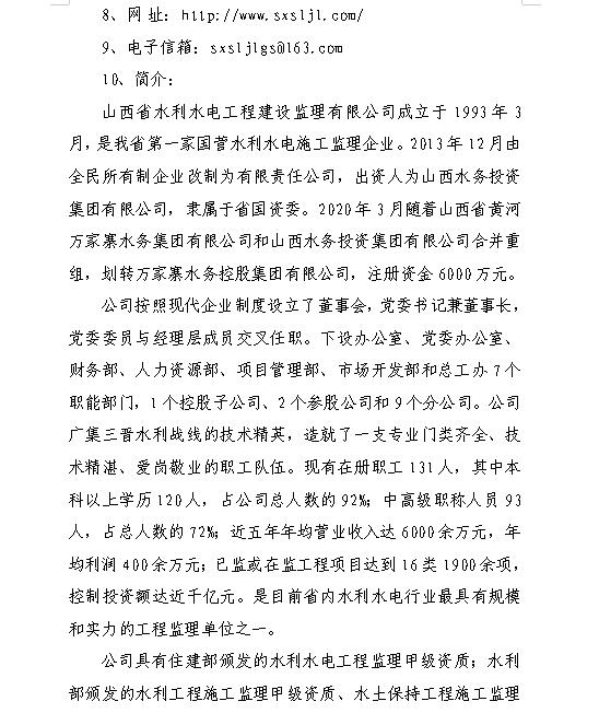 山西省水利水電工程建設(shè)監(jiān)理有限公司