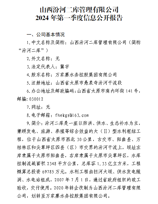 山西水控實(shí)業(yè)有限公司2024年第一季度信息公開報告