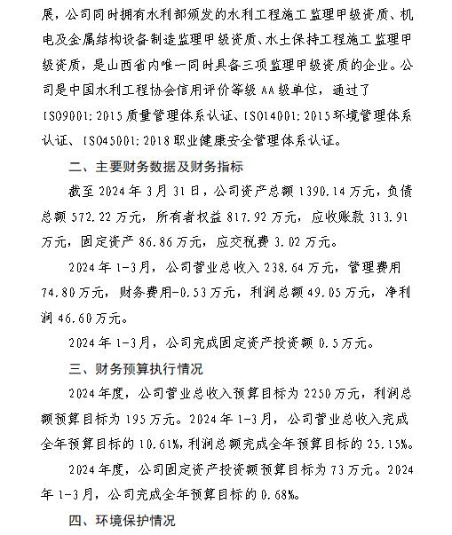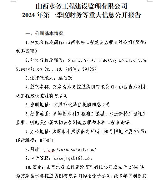 山西萬家寨引黃水務(wù)集團有限公司2024年第一季度信...
