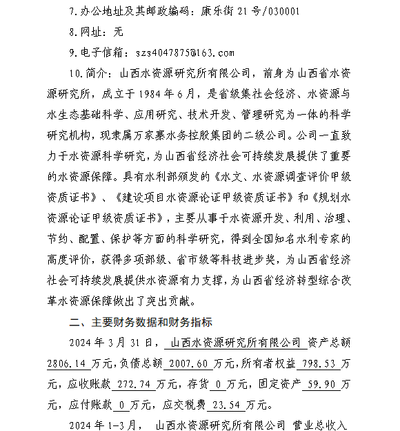 山西水投汾景水務(wù)有限公司2024年第一季度信息公開...