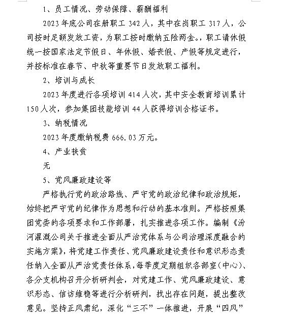山西中部引黃水務(wù)集團(tuán)有限公司2024年第一季度信息...