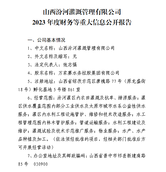 山西汾河灌溉管理有限公司