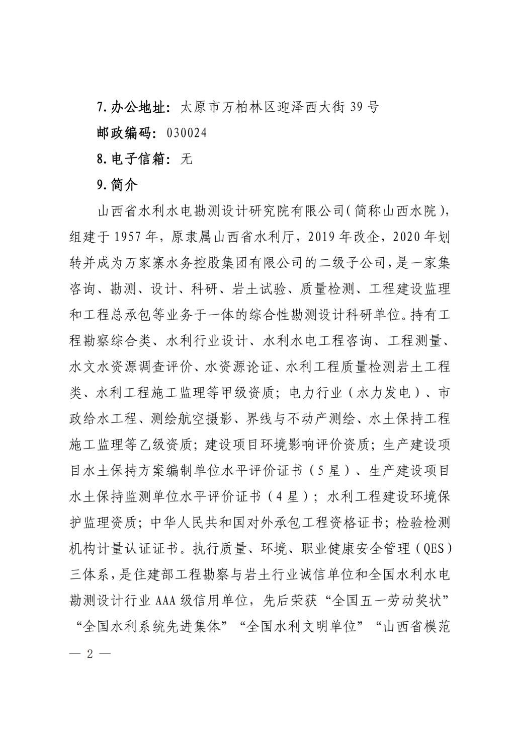 山西省水利水電勘測(cè)設(shè)計(jì)研究院有限公司
