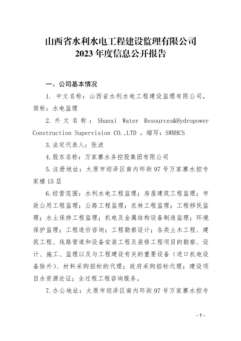 山西滹沱河管理有限公司2024年中期信息公開報(bào)告