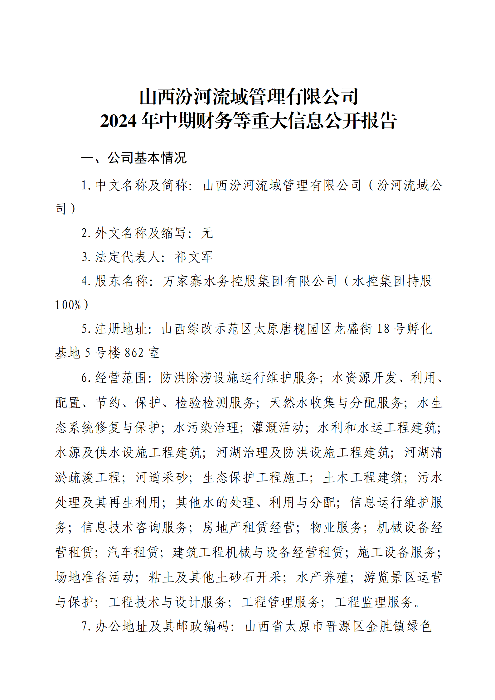 山西汾河流域管理有限公司