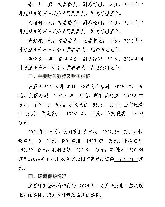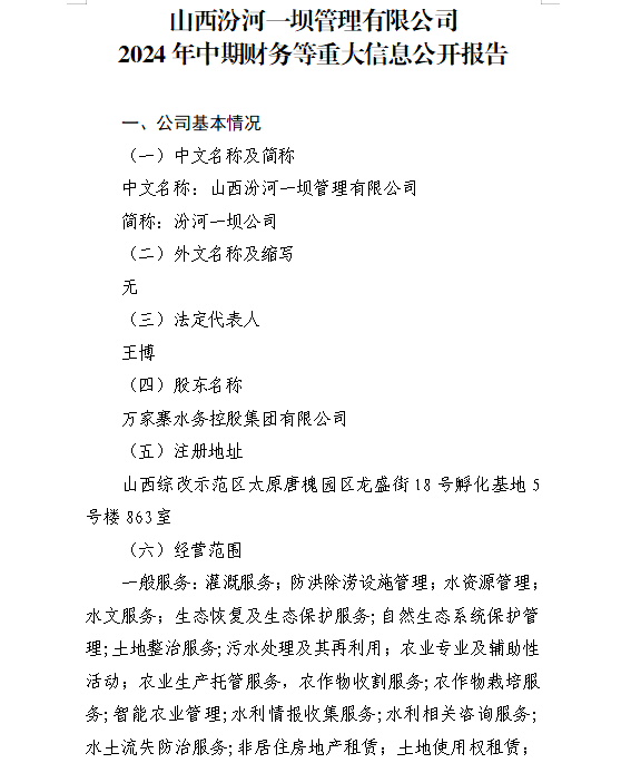 山西小浪底引黃水務(wù)集團有限公司2024年中期信息公...