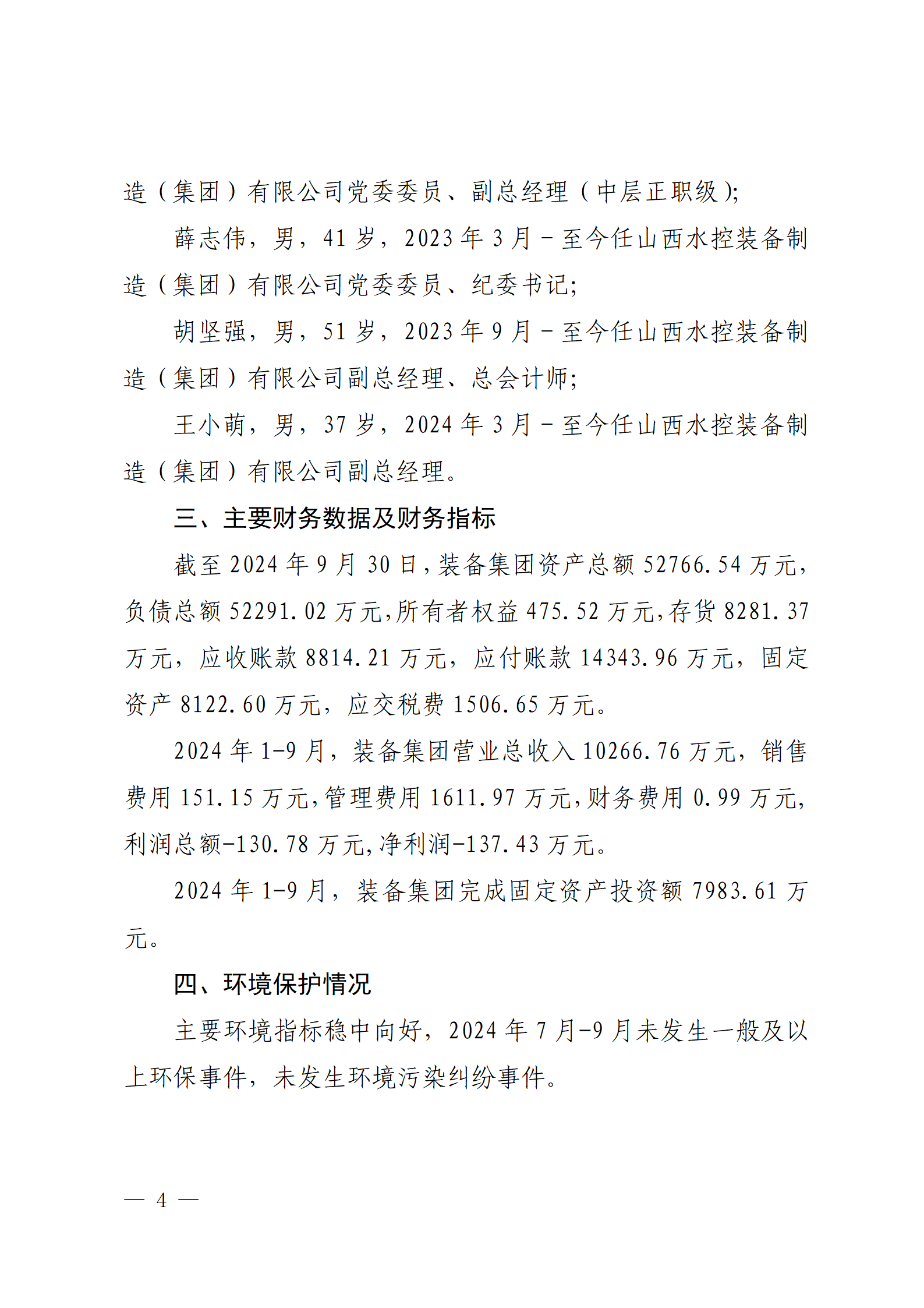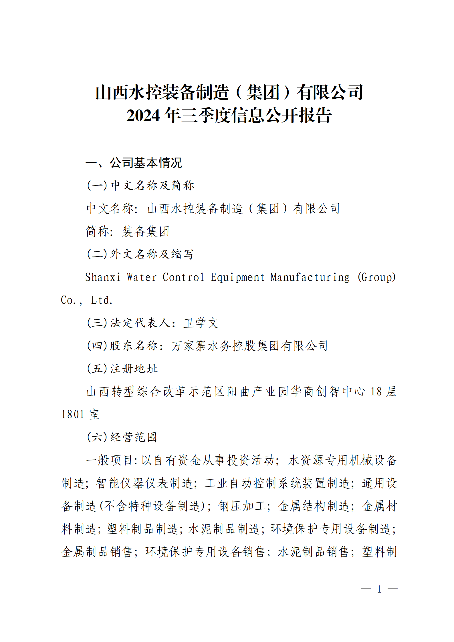 山西水控實業(yè)有限公司2024年中期信息公開報告