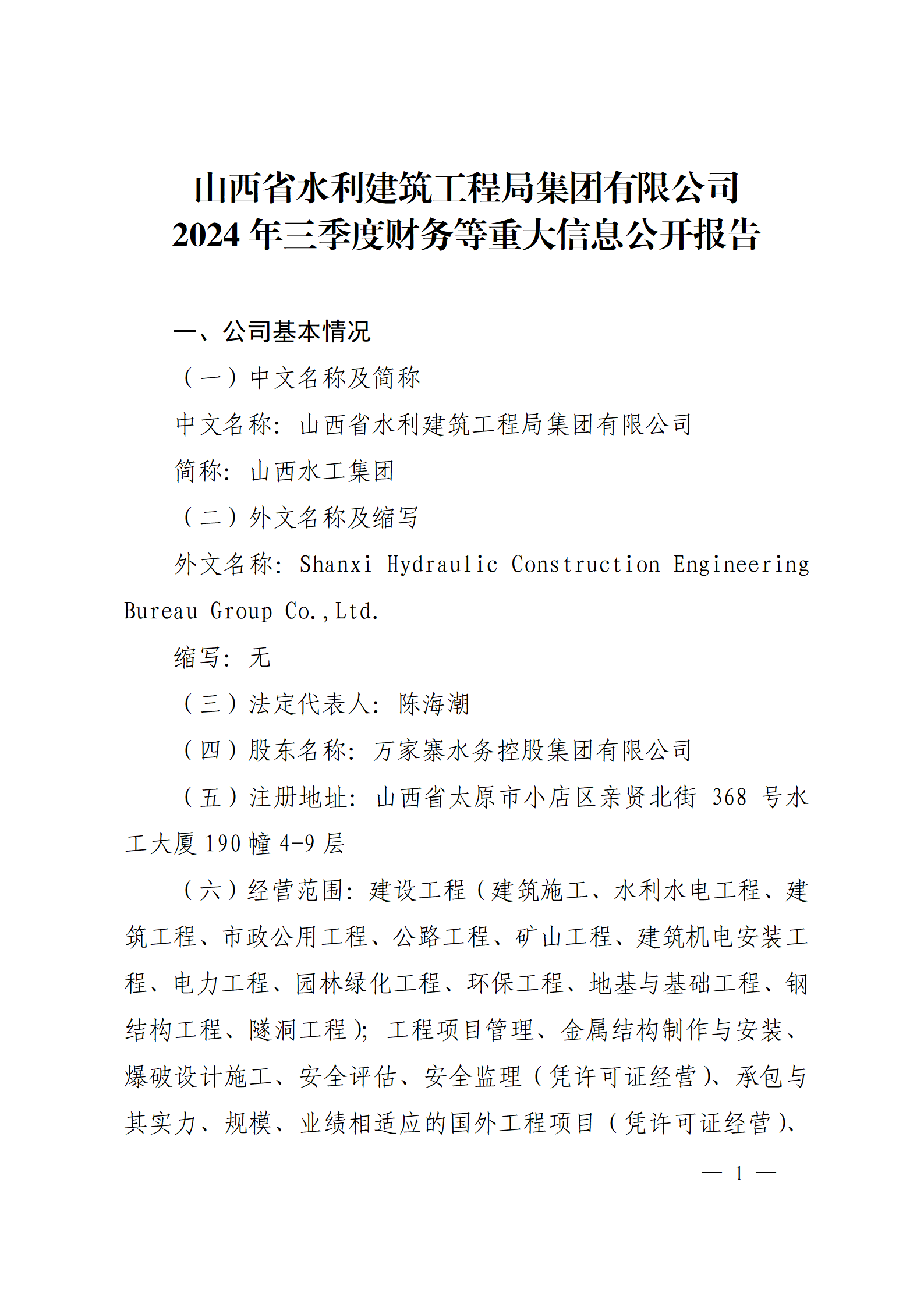 山西汾河一壩管理有限公司2024年第三季度財(cái)務(wù)等重...