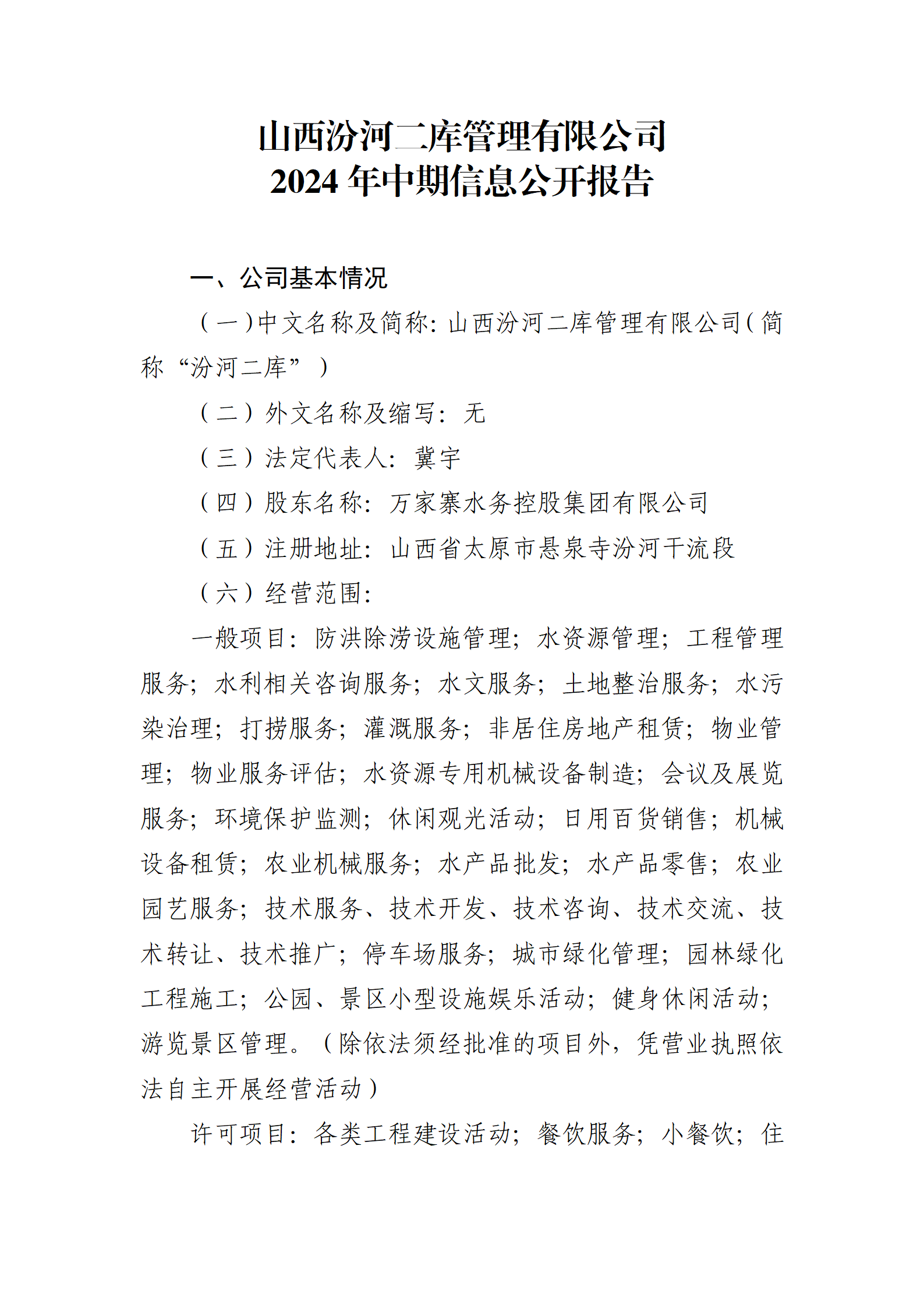 山西汾河二庫管理有限公司2024年第三季度信息公開...