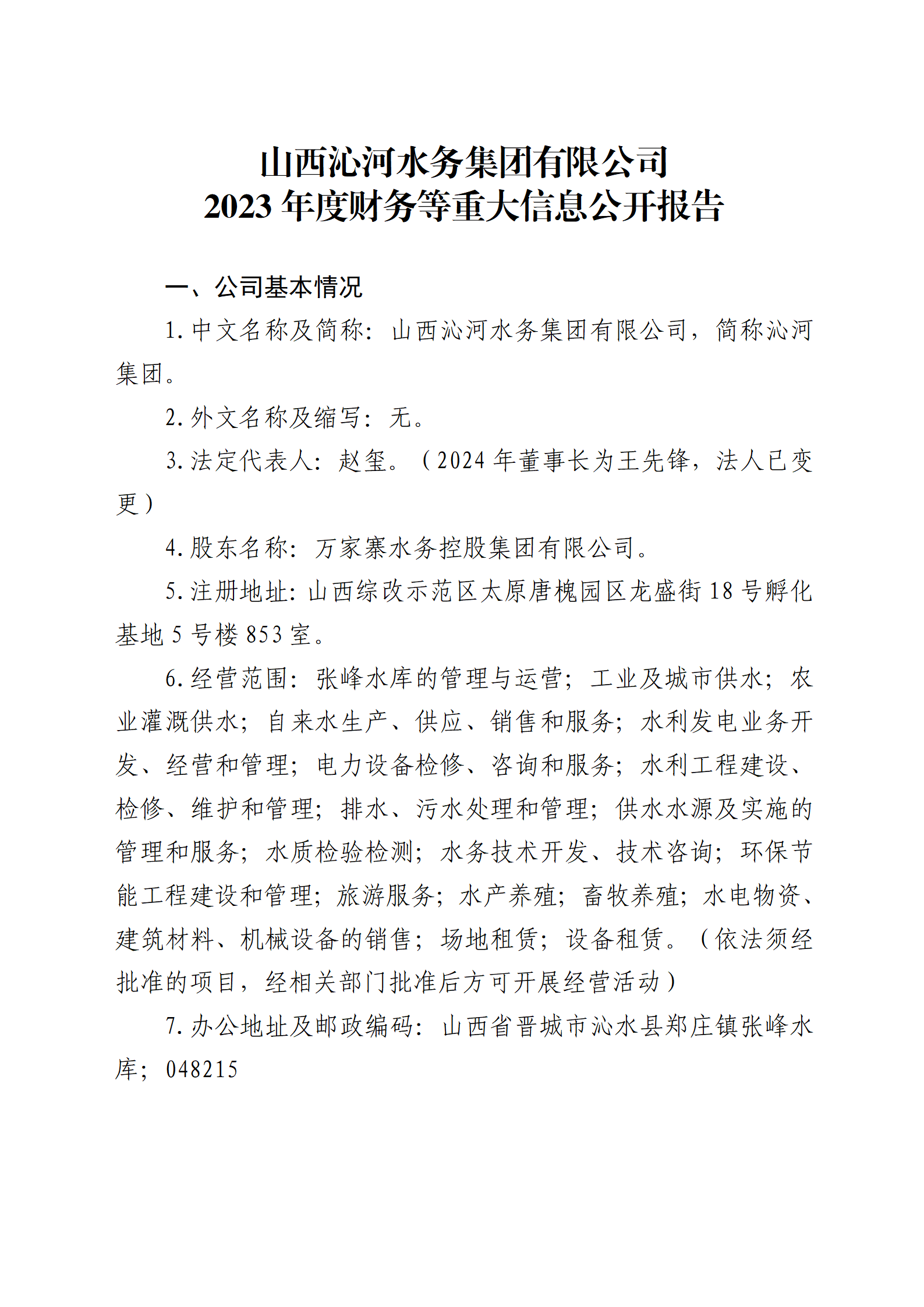 山西水投汾景水務(wù)有限公司2024年中期信息公開(kāi)報(bào)告