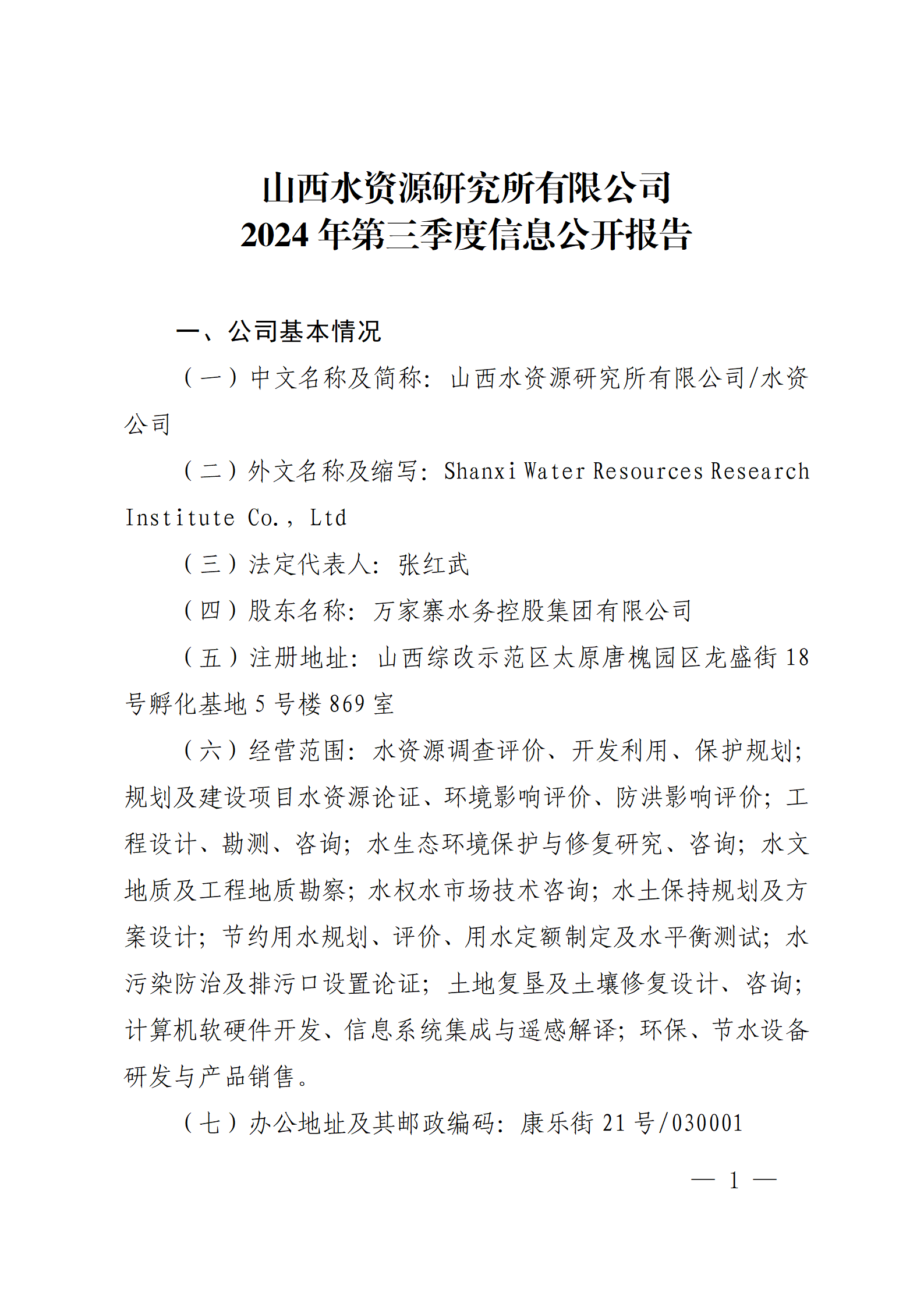 山西柏葉口水庫管理有限公司2024年三季度信息公開...