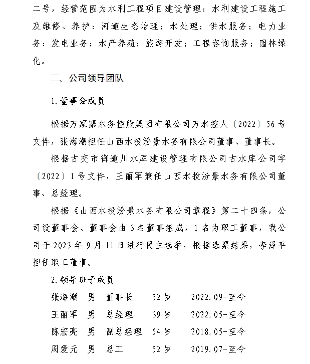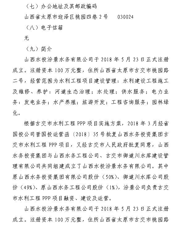 山西水投汾景水務(wù)有限公司