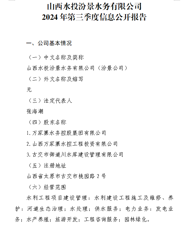 山西滹沱河管理有限公司2024年三季度信息公開(kāi)報(bào)告