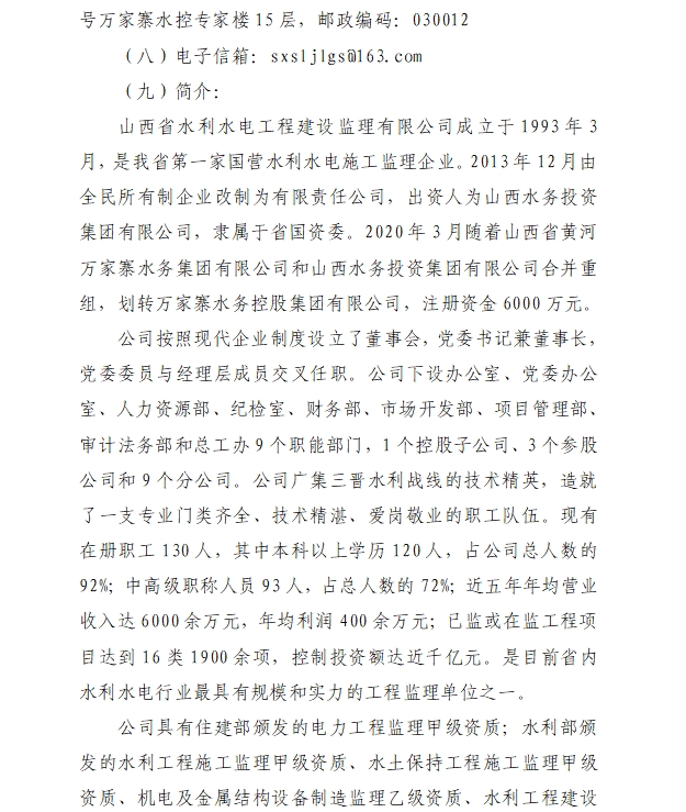 山西省水利水電工程建設(shè)監(jiān)理有限公司