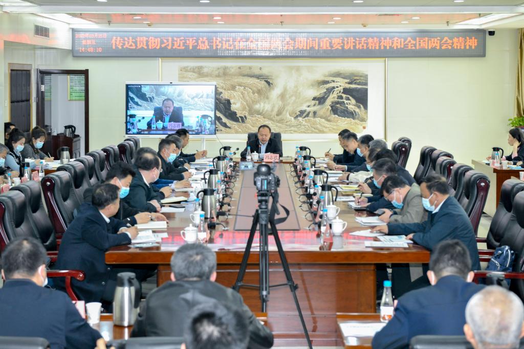馮志君指出,習(xí)近平總書記在兩會期間發(fā)表的一系列重要講話,為我們奮進(jìn)新征程、奪取新勝利,做好相關(guān)工作指明了方向,提供了遵循。習(xí)近平總書記強(qiáng)調(diào),“各級黨委和領(lǐng)導(dǎo)干部要自覺講政治,對“國之大者”一定要心中有數(shù),要時刻關(guān)注黨中央在關(guān)心什么、強(qiáng)調(diào)什么,深刻領(lǐng)會什么是黨和國家最重要的利益、什么是最需要堅(jiān)定維護(hù)的立場”。在全國兩會期間,習(xí)近平總書記還提出了兩個重要論斷,即5個“必由之路”和5個“戰(zhàn)略性的有利條件”,各級黨組織要深刻領(lǐng)會,把學(xué)習(xí)好、貫徹好、落實(shí)好習(xí)近平總書記重要講話精神和全國兩會精神作為重要政治任務(wù),與學(xué)習(xí)貫徹習(xí)近平總書記考察調(diào)研山西重要指示精神結(jié)合起來,與持續(xù)鞏固黨史學(xué)習(xí)教育成果結(jié)合起來,領(lǐng)會精神實(shí)質(zhì)、把握核心要義、堅(jiān)定前進(jìn)方向,在深學(xué)細(xì)悟上下真功,在知行合一上見真章。要將政府工作報告中關(guān)于水利發(fā)展和國企改革的要求融入全年工作,切實(shí)把學(xué)習(xí)成果轉(zhuǎn)化為履職盡責(zé)的具體成效。要立足山西省情水情,聚焦主責(zé)主業(yè),強(qiáng)化責(zé)任擔(dān)當(dāng),發(fā)揮作用優(yōu)勢,上下協(xié)同、凝聚合力,為全方位推動山西高質(zhì)量發(fā)展提供堅(jiān)強(qiáng)水支撐水保障,在補(bǔ)齊水旱災(zāi)害防御體系短板、提高水資源保護(hù)利用水平、實(shí)施鄉(xiāng)村振興戰(zhàn)略、改善生態(tài)環(huán)境等重要戰(zhàn)場上展現(xiàn)水控?fù)?dān)當(dāng)。