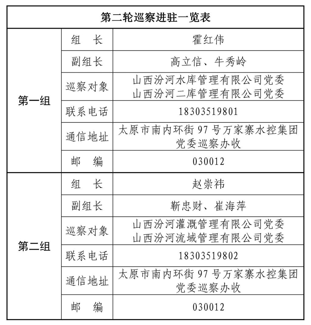 根據(jù)萬家寨水控集團(tuán)黨委統(tǒng)一部署,2月14日,集團(tuán)黨委兩個(gè)巡察組已完成對(duì)汾河水庫黨委、汾河二庫黨委、汾河灌溉公司黨委、汾河流域公司黨委的進(jìn)駐。